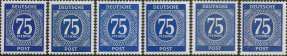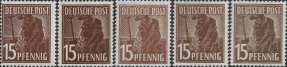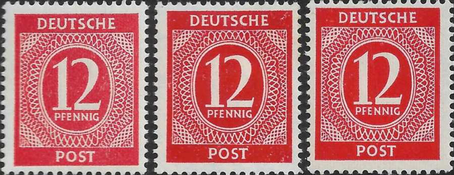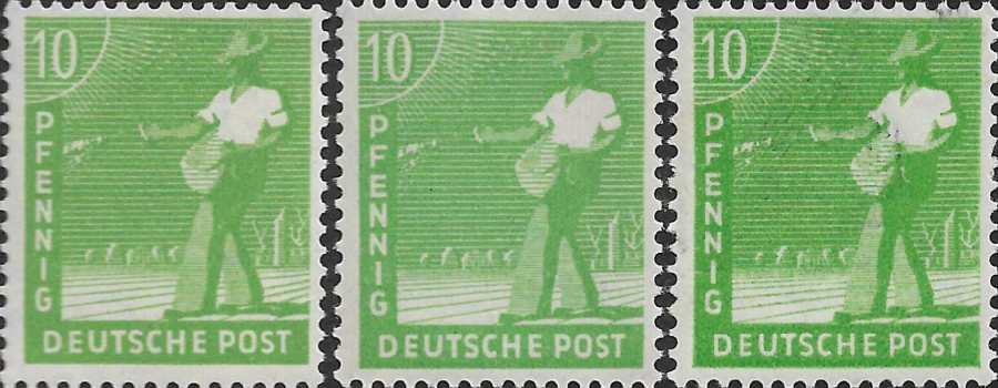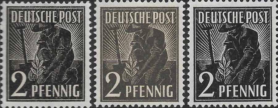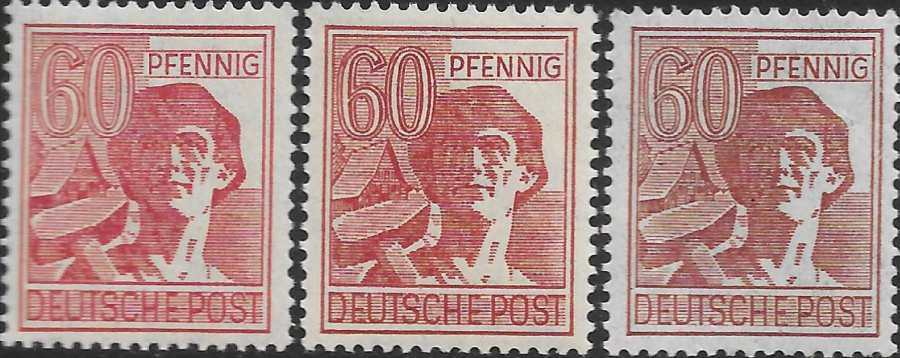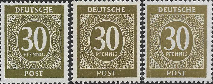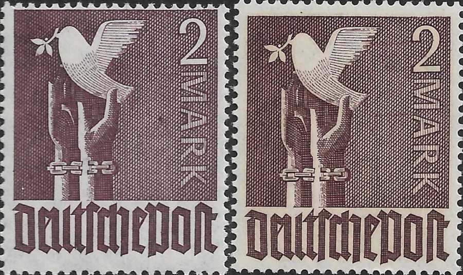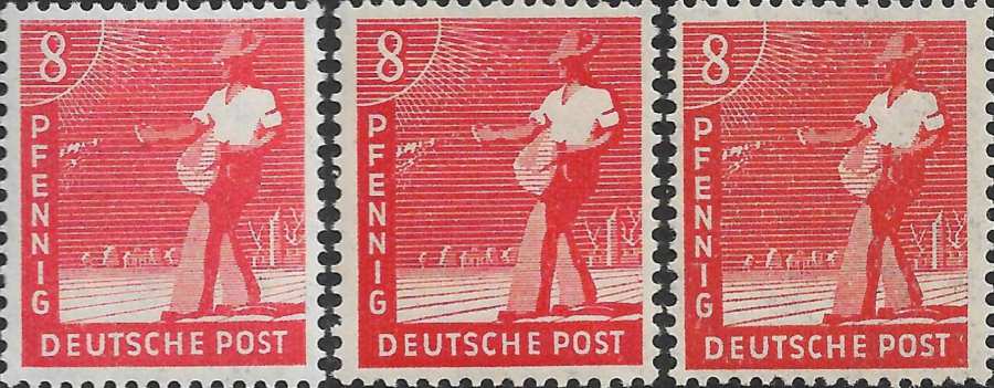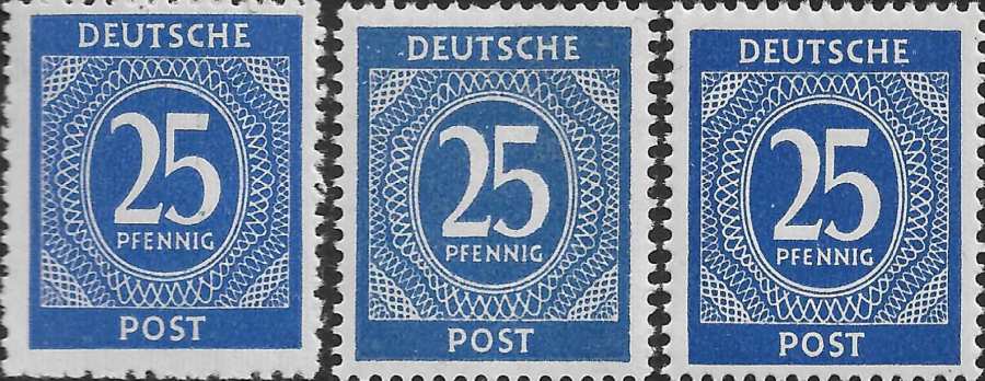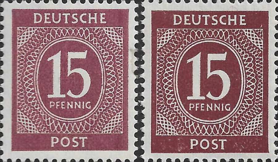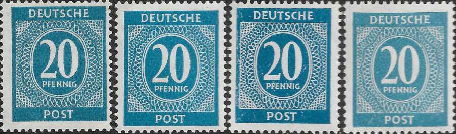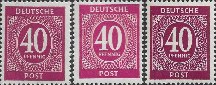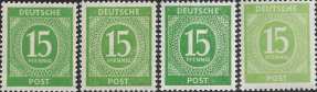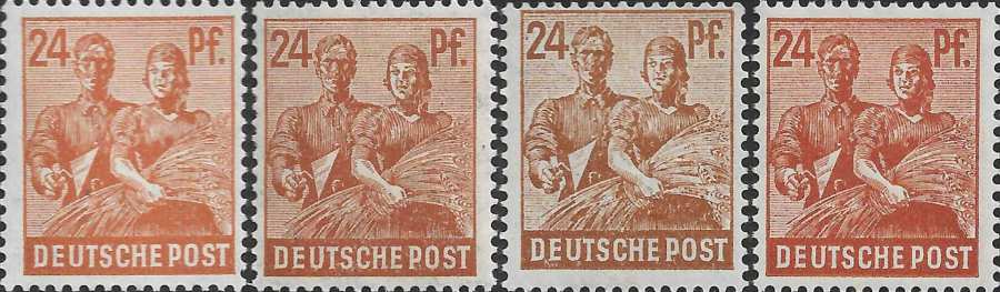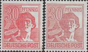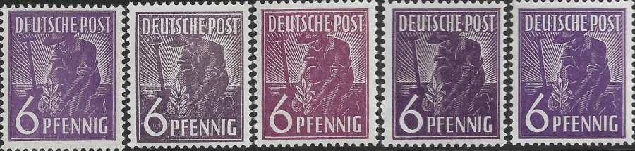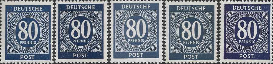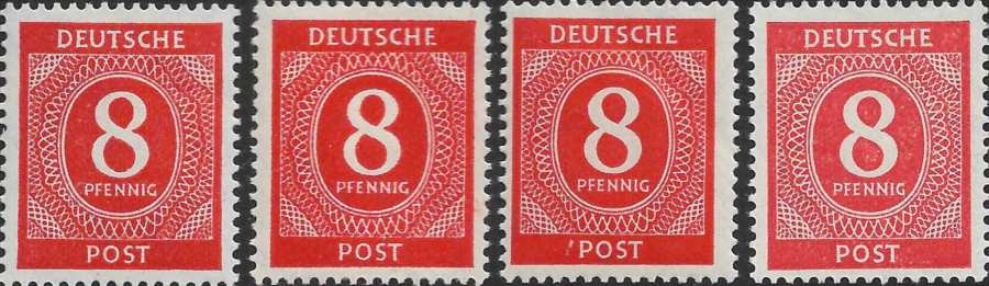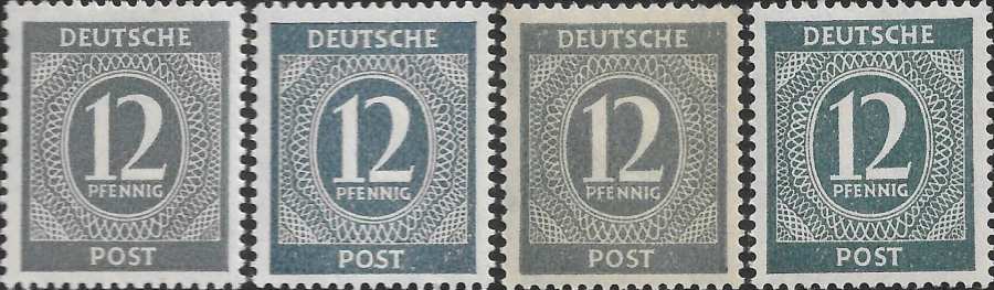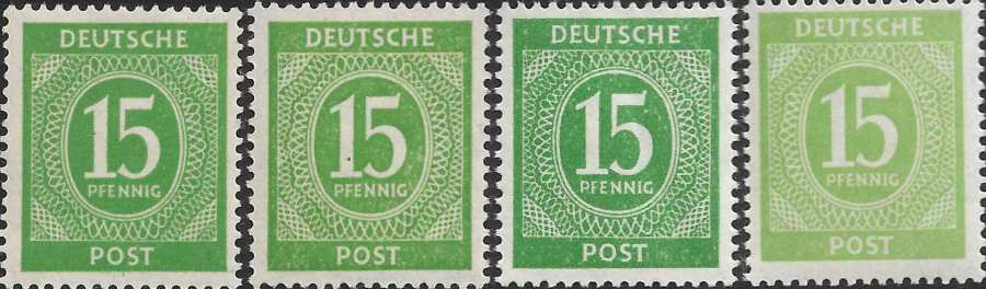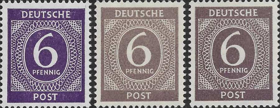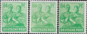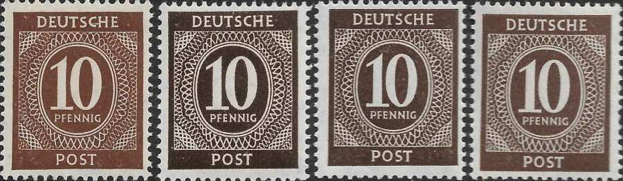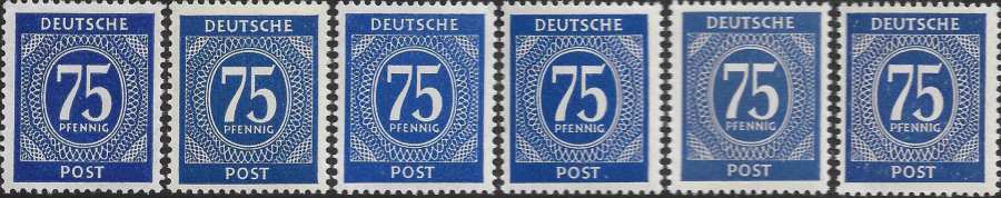 Die besseren Katalogfarben umfassen Teils mehrere Tönungsbereiche bzw. Forschungsfarben. Bei den billigsten Farben, überwiegend den a-Farben, ist das die Regel. Es handelt sich bei den abgebildeten Marken jeweils um orientierende Beispiele. Durch das Scannen ist eine gewisse Abweichung der Farbwiedergabe nicht zu vermeiden. Die Farbwahrnehmung der Marken im vorliegenden Original kann im Vergleich abweichen. Bei der Farbbestimmung einiger Katalogfarben gibt es Kriterien, nach denen unter UV-Licht bestimmte visuelle Merkmale vorhanden sein müssen. Diese Merkmale können hier leider nicht dargestellt werden.