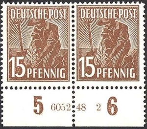 So wurden auch bei den Ausgaben des Kontrollrates die interne Auftragsnummer der Reichdruckerei – Hausauftragsnummer (HAN) - beim Plattendruck auf dem Unterrand zwischen Feld 95 und 96 abgedruckt. Dabei bedeuten die ersten drei oder vier Zahlen den Auftrag, dann kommt die Jahreszahl (die zwischen 1945 und 1948 liegt) und anschließend die Plattennummer (1-4 - Nutzen im Druckbogen).