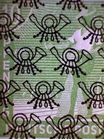 verzerrte Posthornschlaufen, darüber und darunter breitere Abstände zwischen den Posthörnern (1., 4. und 7. senkrechte Markenreihe)