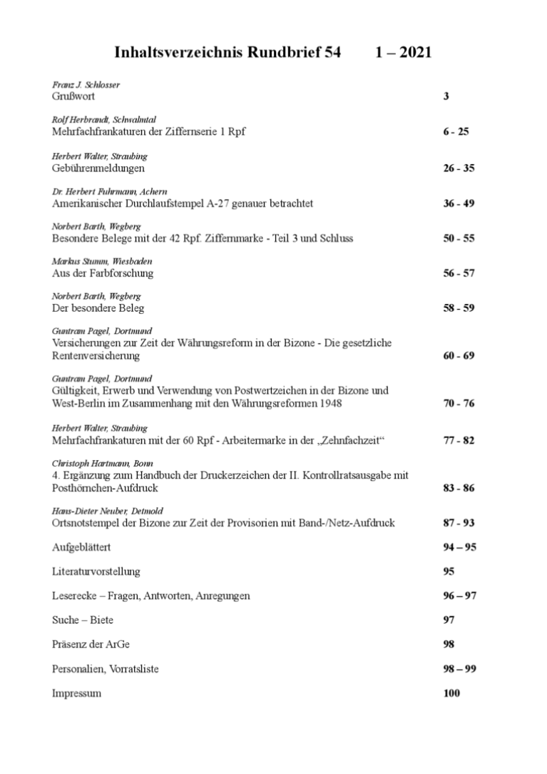 Inhaltsverzeichnis Rundbrief 54 1 – 2021
