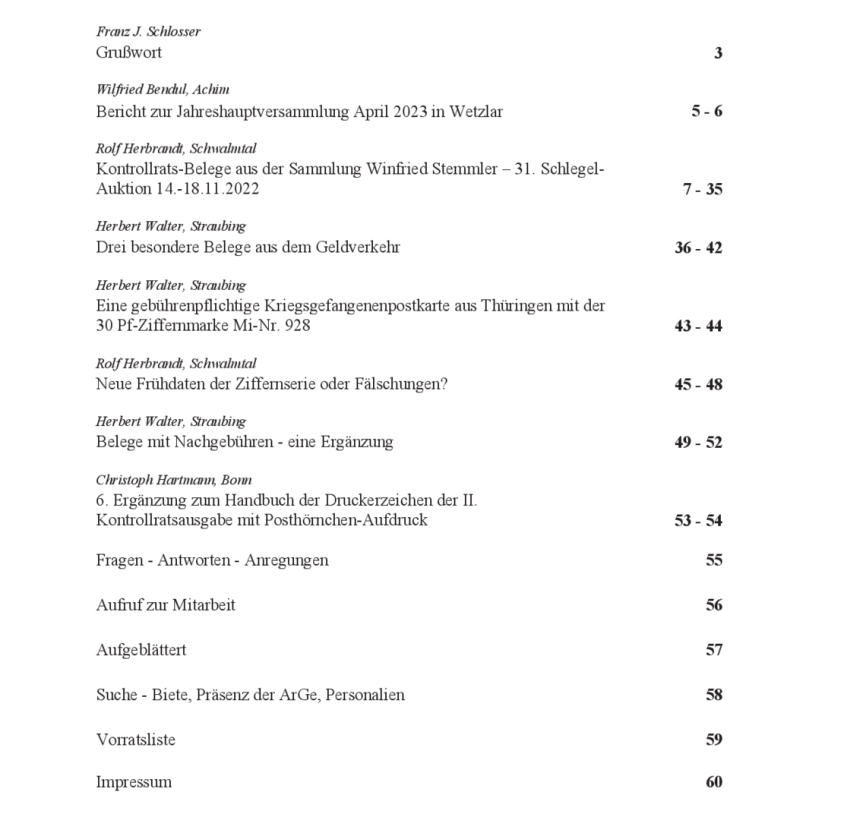 Inhaltsverzeichnis Rundbrief 58 1 – 2023