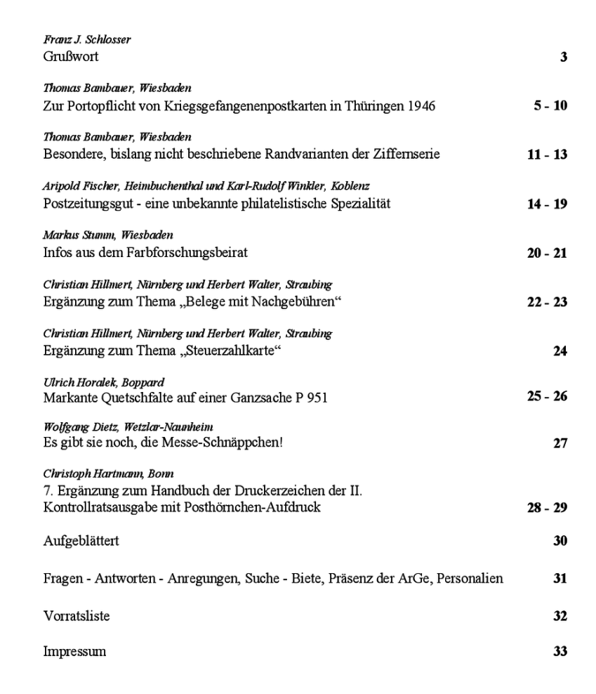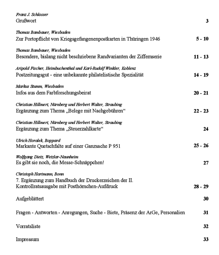 Inhaltsverzeichnis Rundbrief 59 2 – 2023