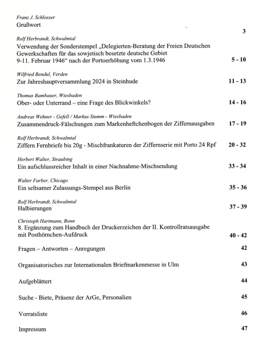 Inhaltsverzeichnis Rundbrief 60 1 – 2024
